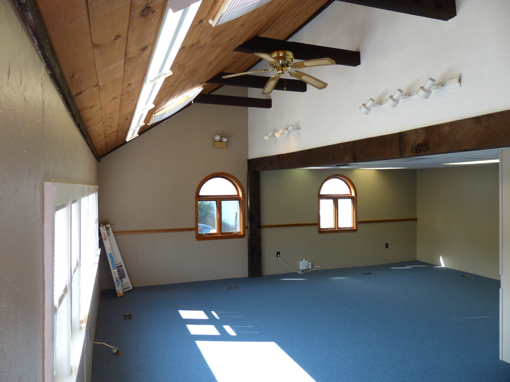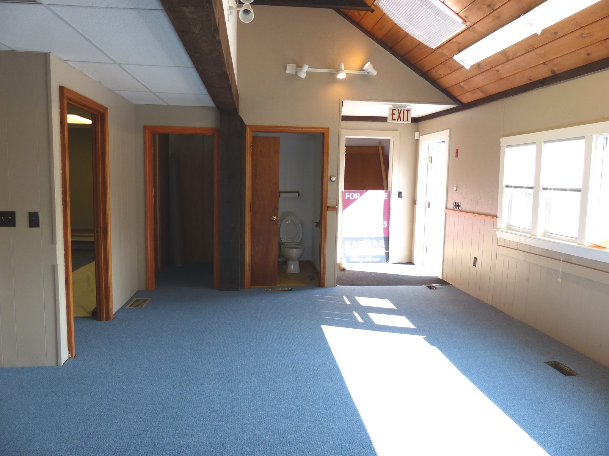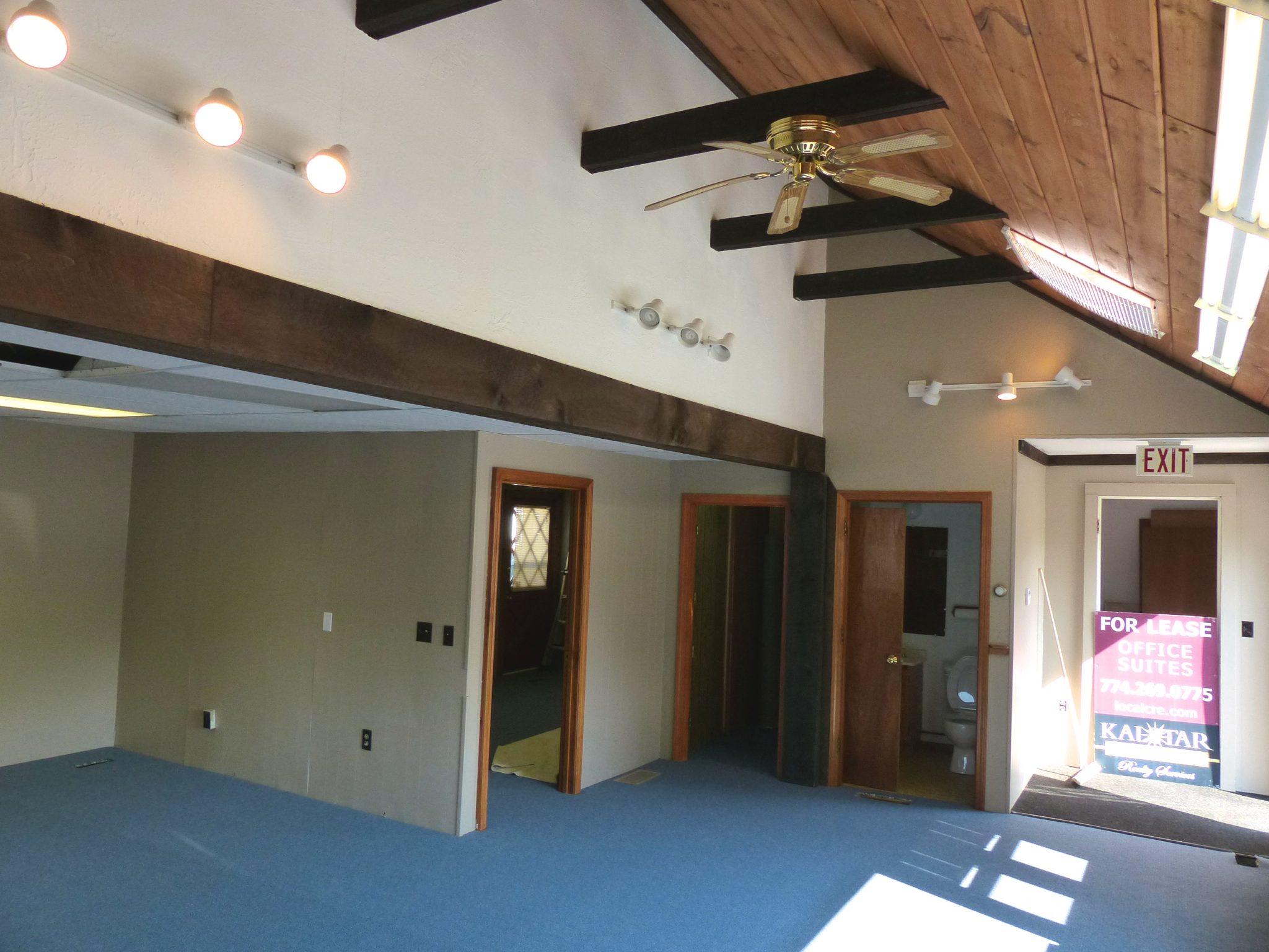 Flexible business space configured in a two room office suite with a kitchenette. Some cathedral ceiling, skylights, large windows. Lots of power and data jacks. Gas HVAC. Great location in redeveloping West Wareham.